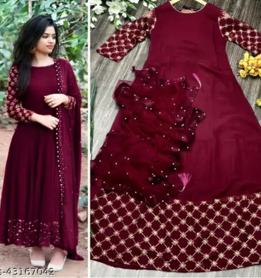 full stitched kurti set with dupatta and pajama. women embroidered straight kurta