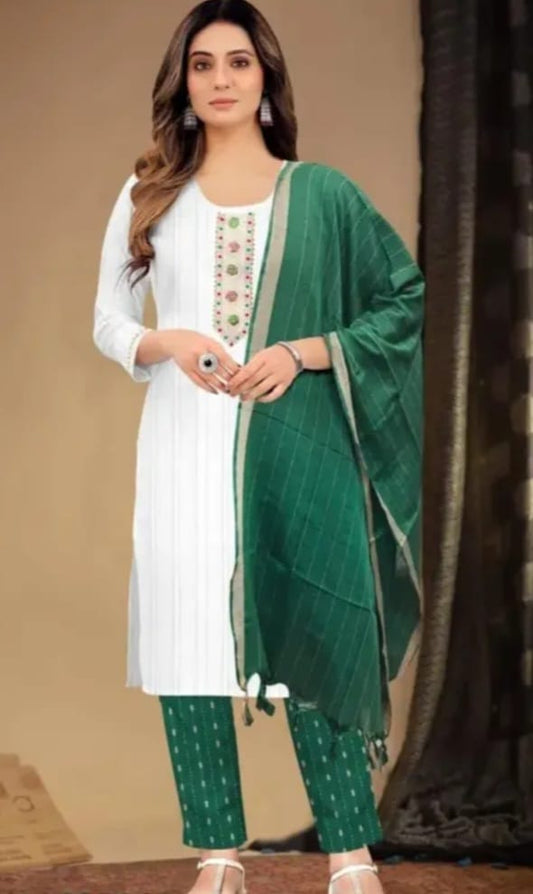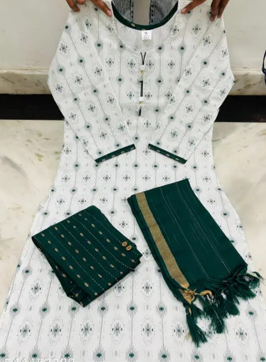 combo of green and white printed cotton kurtha set for women with duppata