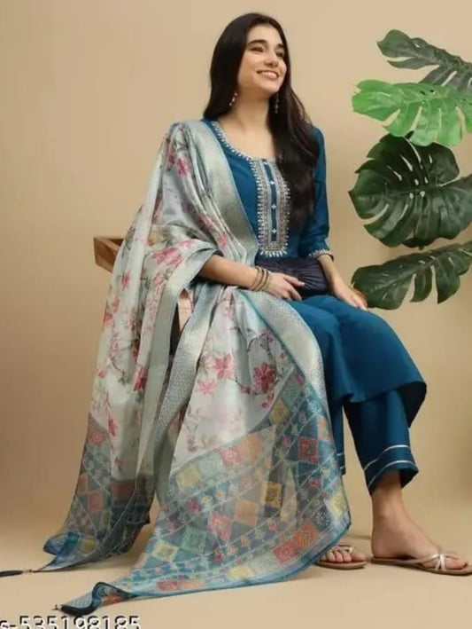 women kurta and pant set with dupatta